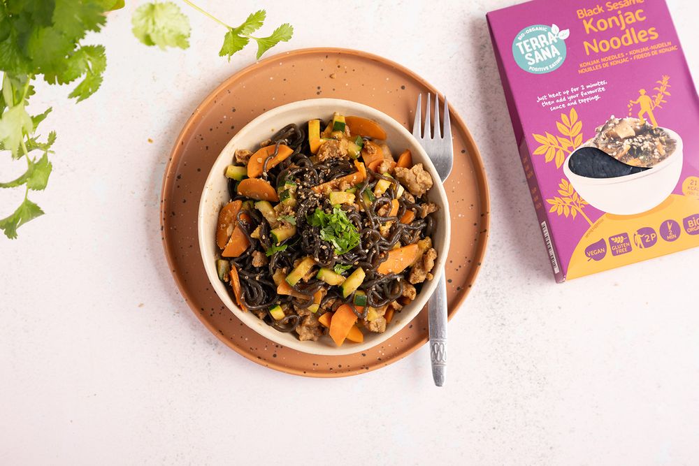 Deze konjac noodles met miso saus zijn een makkelijke, lichte maaltijd voor elke dag. Low carb, laag in calorieën en snel klaar. De seitan zorgt voor eiwitten, de groenten voor bite en de miso-gember-yuzu saus voor een volle umami-smaak en zowel zoet, zuur als umami. In 15 minuten heb je een voedzame, vegan maaltijd die goed vult, zonder zwaar te zijn.